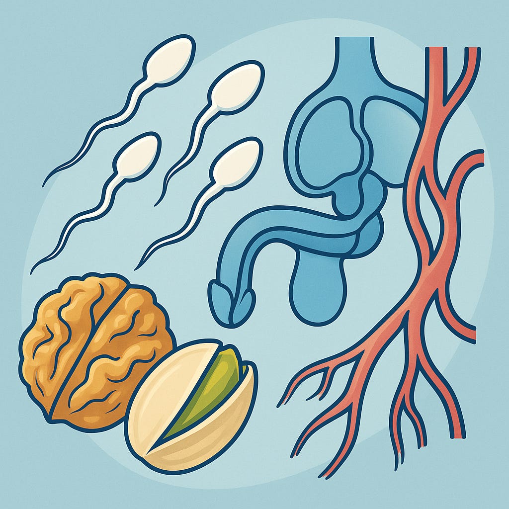 A systematic review and meta-analysis of four studies involving 875 adults found that daily nut intake may improve sperm motility, morphology, and vitality, while modestly enhancing erectile function through better vascular performance.